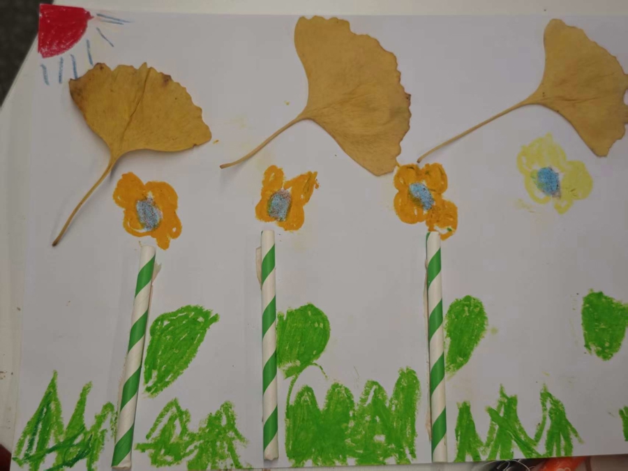 7岁的魏心瞳用前期收集的银杏叶和吸管做成了一幅拼贴画。“我们家住植物园附近,她特别热爱植物,平时放学后经常来园里玩,艺术创作是另一种表达喜爱和关注的途径。”家长表示。