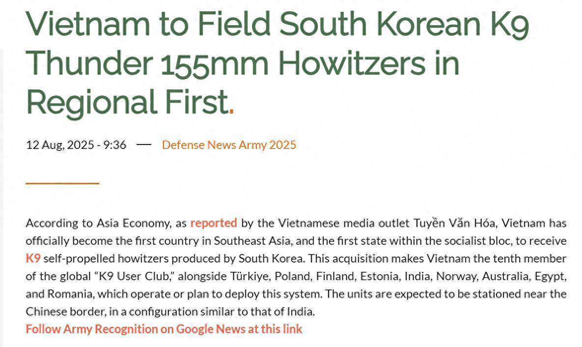 根据美国军事网站的报道,越南军方已与韩国签订协议,将采购20门K-9自行火炮,交易金额高达3亿美元。这一消息不禁让人思考,越南此举背后的战略意图及其可能带来的地区影响。