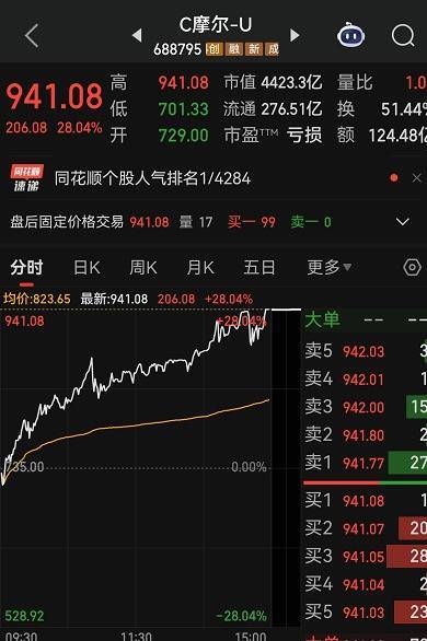剑指1000元大关,摩尔线程收盘再创历史新高,上市5个交易日大涨超过720%!