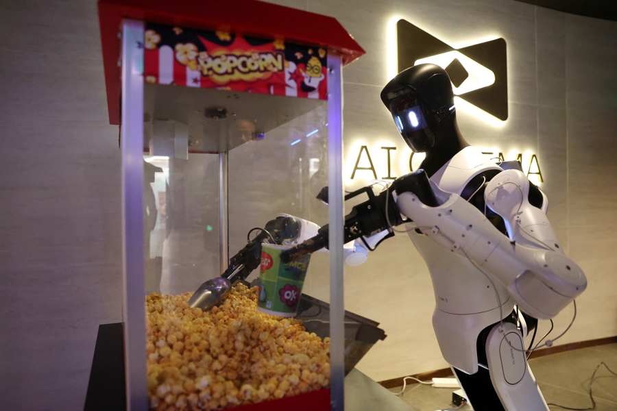 机器人在为顾客装爆米花。