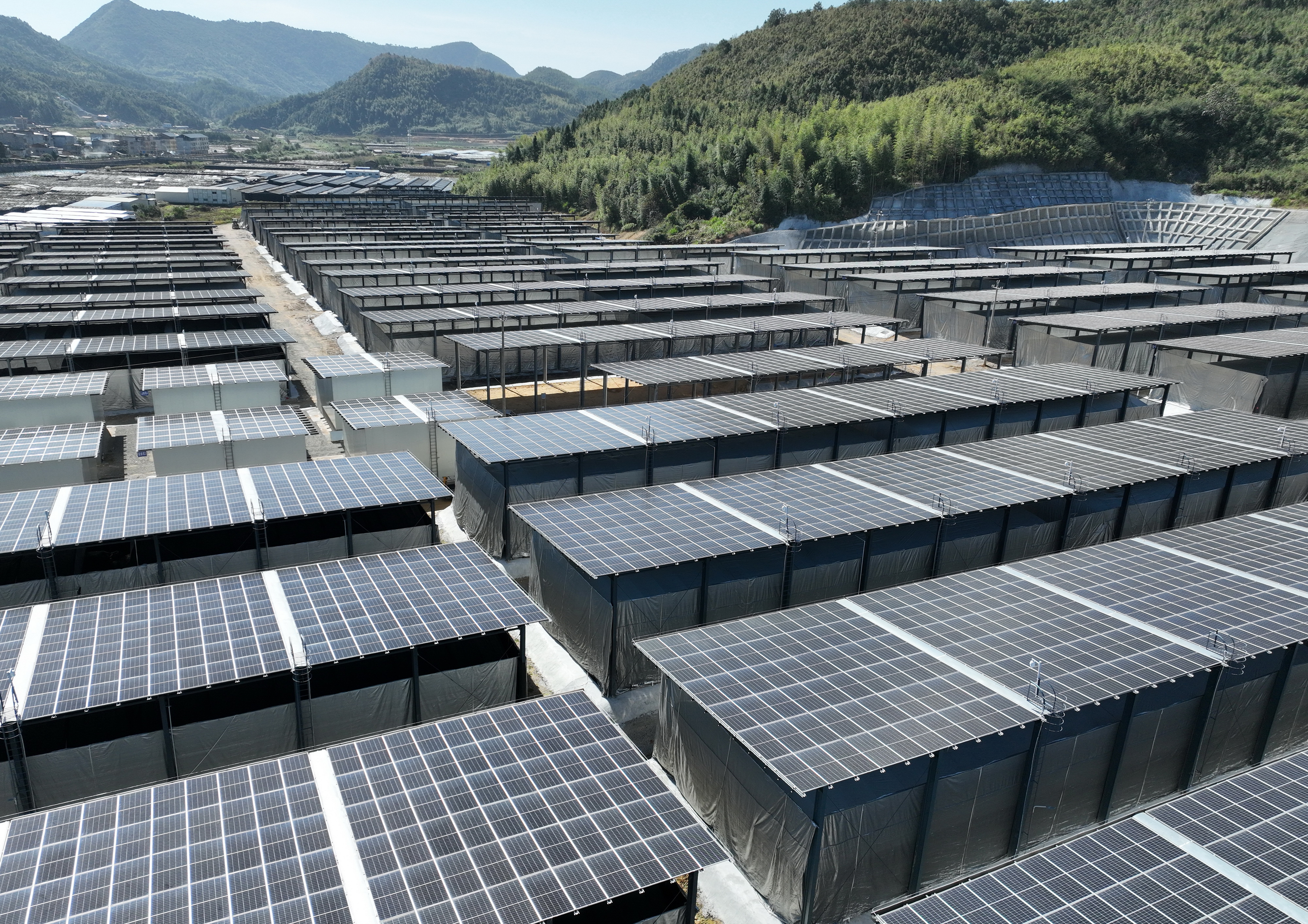 古田杉洋光伏菇棚基地一角。新华社记者 林善传 摄