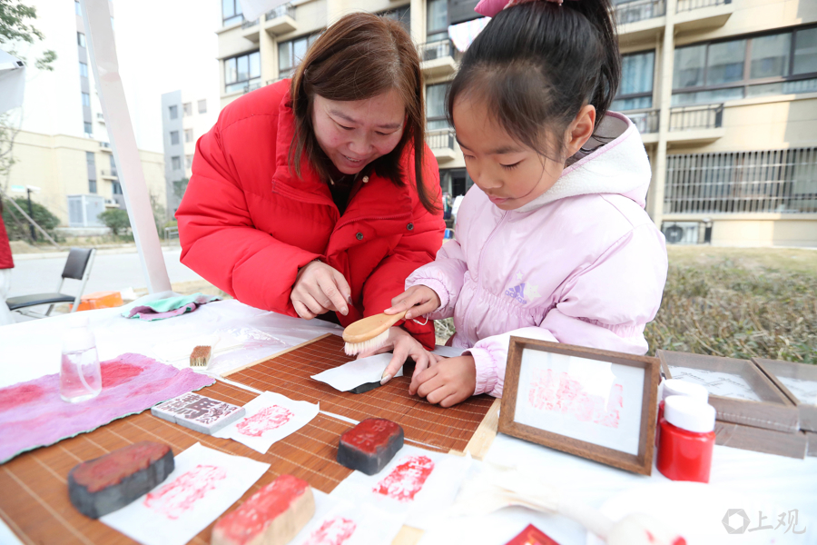 小区广场上,“新居全家福”拍摄点前排起了队,一张拍不够。碉堡旁的趣味游戏区也热闹非凡,“步步高升”投壶游戏、“年年有余”套圈区、“团圆拼图”挑战区都聚拢了很多大人和小朋友,大家在开怀欢笑中感受家园的崭新变化。非遗巧手坊里,手艺人现场制作“福”“春”“马”主题剪纸,书法老师挥毫泼墨写就一副副春联、一个个福字,非遗传承人指导大家制作马年主题或“家”字主题拓印作品,让居民在亲手体验中感受传统文化的魅力,共同迎接新年的到来。