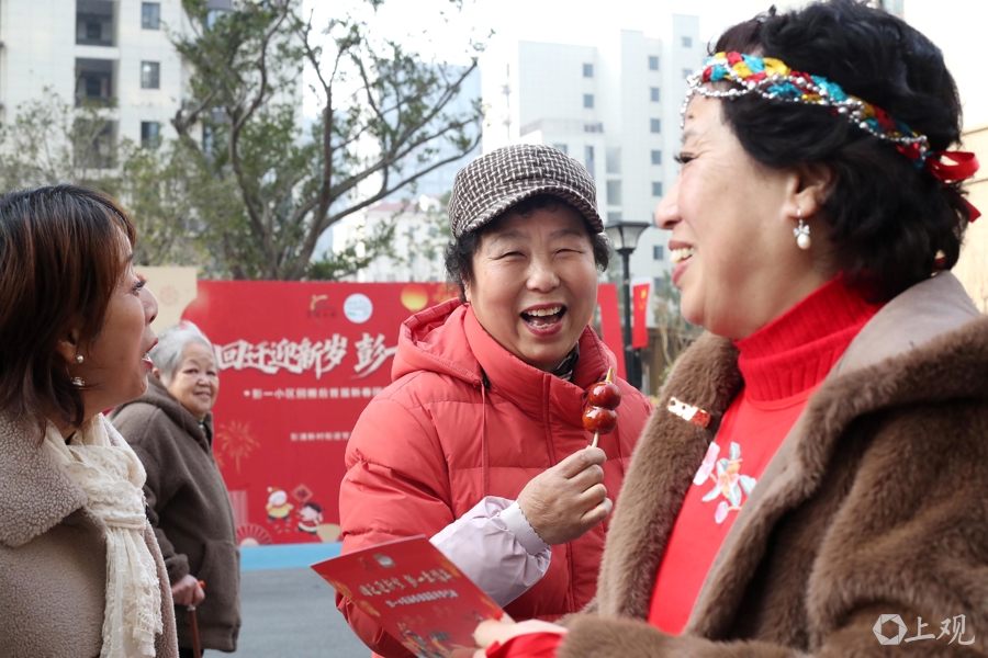 作为上海中心城区最大规模的“原拆原建”旧改项目,这是彭一小区2110户居民回搬后的第一个团圆年,大红灯笼挂起、喜庆春联映照着一张张笑脸。