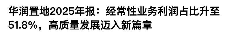 华润财报里有一个数据很有意思,经常性业务利润占比首次超过了50%。这意味着华润正在从靠卖房子赚钱转向靠管房子赚钱。